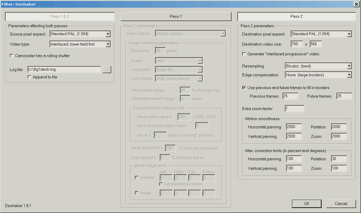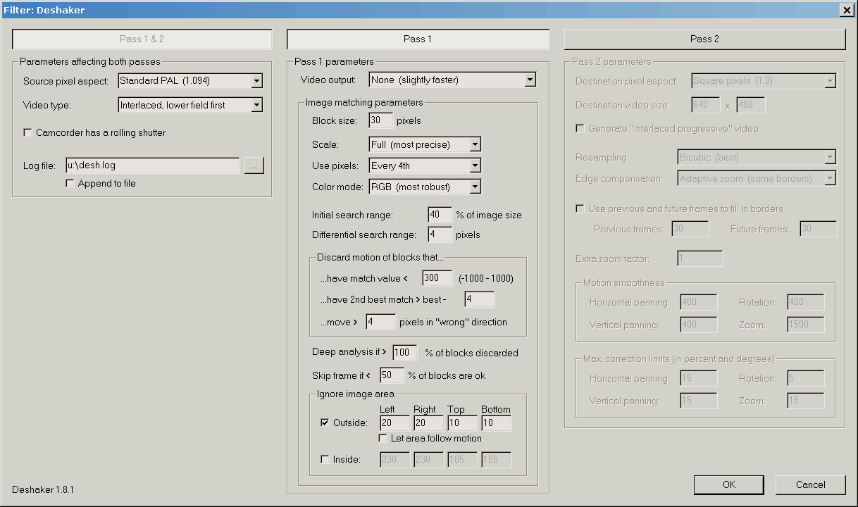 Note that something in this filter set reverted field order in my test. I can't say if it's the resizer or the deshaker or if it's reproducible in any setup. It's not a big problem but you have to tell your MPEG encoder. With CCE, set offset line to 0 instead of 1, if the file format is DV.