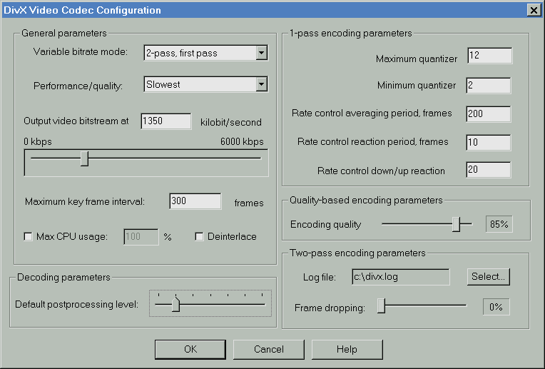 Two pass encoding however is a must: The second pass now runs almost twice as fast as pass 1, and the gain from only about 50% more encoding time is definitely worth the while.Conclusion: Very little reason to use more that the standard DivX5.02 encoder, but any reason to use just that one, in two pass mode of course.