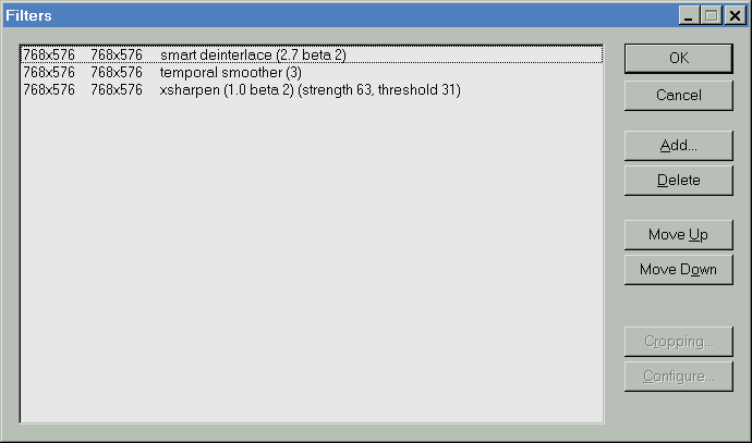 The result from this is usually both cleaner and crisper than the original TV transmission. Temporal cleaner would be less CPU intense than Temporal Smoother but at strong settings it makes traces. Temporal smoother is also good against wandering moiré and stripes.