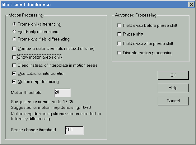 For analog captures, it's recommendable to use Smart Smoother, R3 w. interlaced option (or Temporal Cleaner w. same option if CPU power is scarce, or as well Temporal Smoother depending on the source), then Smart Deinterlacer (only if your target is viewing on computer monitors) with these options.