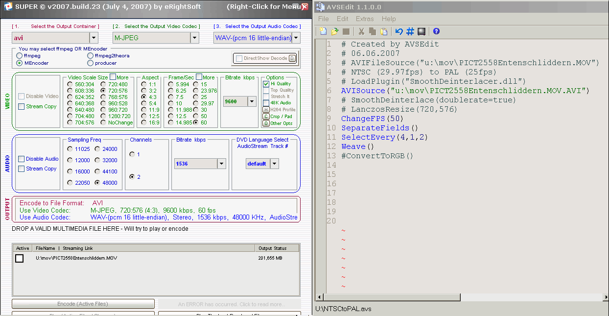 First, we convert the video into an intermediate format readable by VirtualDub. This goes as follows: