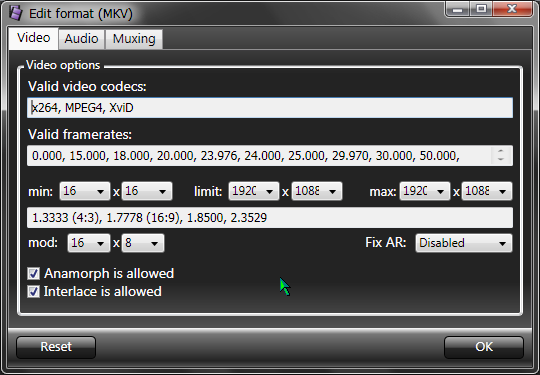 ![]() MKV is the current standard and supports virtually any kind of video and audio stream formats. Note that .MP4, e,g, should be avoided: It has a limited allowed file size. |
