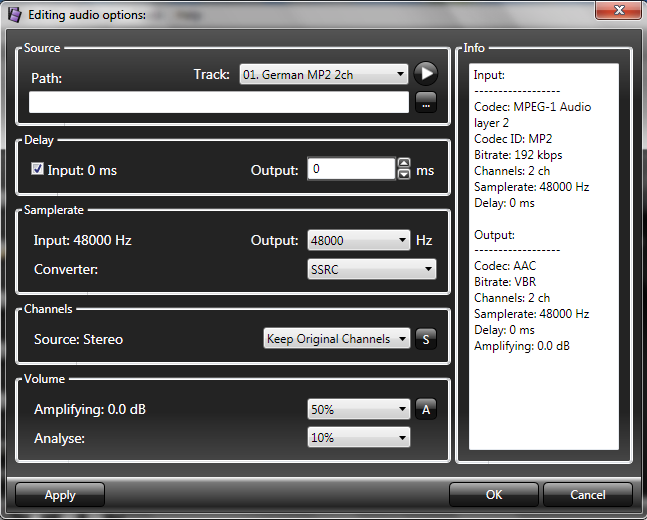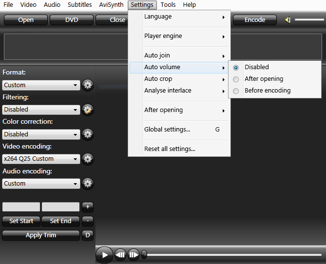 ![]() Some sources have audio levels greatly deviating from normal. The settings shown here will normalize the average track volume to -6 dB, which is a most common level. If and when to apply is selected via Settings / Auto Volume. |