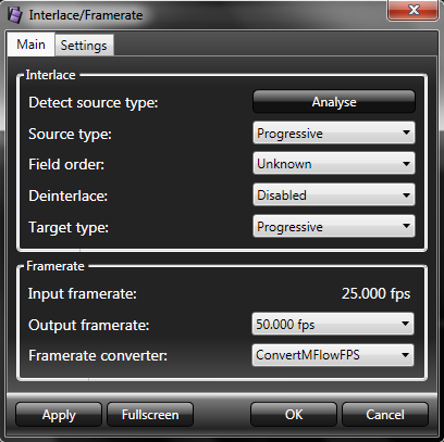 ![]() Note: if you want to remove logos from videos as well, do this first, in a separate step, with Virtualdub2 (as described below), an then convert the framerate separately. This is due to the fact that the motionflow conversion may produce little artifacts around logos if the image content moves behind them. |